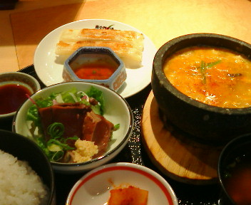 コメント:ちょっとずつ小皿に弱いんです。なぜかアンバランスに付いてくるカツオのタタキに魅かれてしまった。明るく広い店内、女性客も多い。一品一品はウマイビームが出るほどではないが、全く問題ない。ボリューム、ご飯お替り自由、コーヒーまでついて来るのなら、お得感はよしだ。他にプルコギ御膳やヂンギスカン御膳、クッパなどバリエーション豊富。