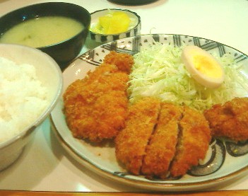 コメント:新橋駅前ビルB1のマスターが一人で切盛りしている、カウンター6,7席のかな〜りB級怪しさ漂う小さなとんかつ屋です。ミックス定食にはチキン、メンチ、ヒレと3種類のカツ、ボリュームがある。煮卵スライスが謎だがちょっと嬉しい。チキンは柔らかく鳥臭さもなく美味い。メンチは注文後に形成しており、くどさも然程なく悪くはない。ヒレちっちゃ〜だが、柔らかくこちらも悪くはない。ご飯半分お替りしたらお会計時+50円。ガク・・・_| ̄|○ 。内容的にはB級十分、惜しいな〜〜。同じ新橋駅前ビルのとんかつ「まるや」が優等生なだけに、目劣りするのは仕方ないか。他、カツ丼、ロース800円。ヒレ900円。メンチ、チキン750円。常連風のお客さんが頼んでいたロース、ヒレは結構巨大だった。気になる。