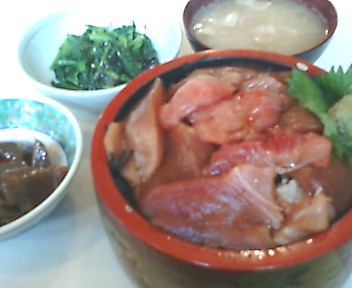 注文の品:まぐろづけ丼(大盛可、小鉢2、豚汁)
