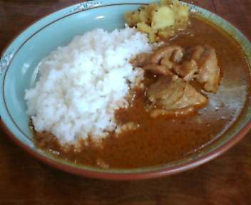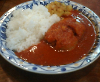 赤いルーで、ちょっとトマトの酸味あり。チキンほどではないが、スパイシーさも健在。