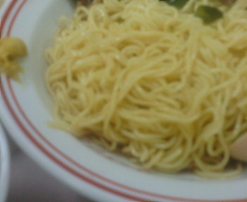 麺は結構ボリュミー。玉子麺で元々ぼそっとしているので、そんな感じのコシがある。タレもすかっくはなく 障りのない冷やし中華。