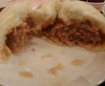 でかい!! 直径15cmぐらいある。餡は結構みっちりと詰まっており、割と甘い味付け。コンビニ肉まんの様なくどさはなく美味い。