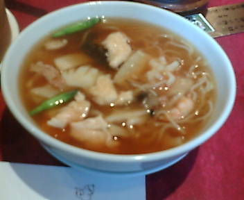 五目つゆそばハーフサイズ。スープがあっさりしてて好み。竹の子、海老、豚肉、イカが入ってる。干し椎茸が美味い。