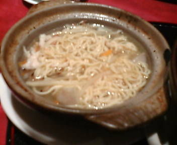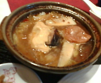 精進鍋と言う割には、肉が詰まった湯葉と揚げが乗っている。だが美味い! 肉まんの具と同じ感じ。太いマロニーちゃん風のと、白菜、竹の子が入っている。やはり干し椎茸は美味しい。ちょいとピリ辛のとろみスープが塩梅よい。