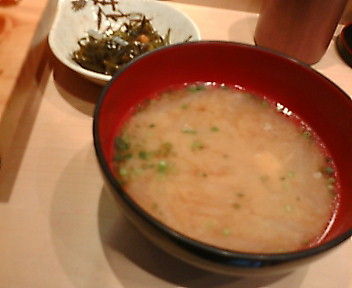 味噌汁は巨大なお椀で出てくる。大根入りのアラ出汁。小鉢も付く。