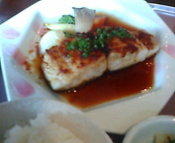 注文の品:日替わりランチ・サワラの香味焼き(サワラ焼、小鉢、ご飯・味噌汁(お替可)、漬物)