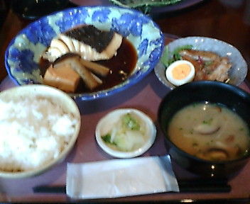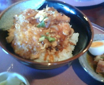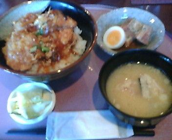 淡泊な白身に、いい感じの甘辛いタレの玉子とじで美味かった。小鉢は豚の角煮、薄味のお上品な味付け。