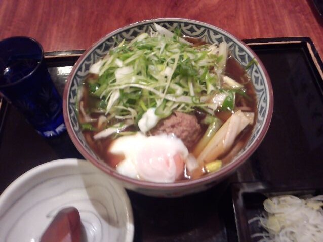 九条ねぎと深谷ねぎがたっぷりと乗っている。あと温玉も。