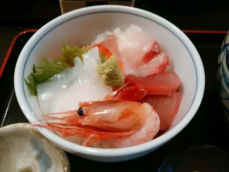 マグロ、イカ、タイ、サーモン、甘エビなど、鮮度良く良質。美味いです! 下手げな海鮮なんちゃら屋より良い。ご飯は酢飯ではないが御愛嬌ということで。
