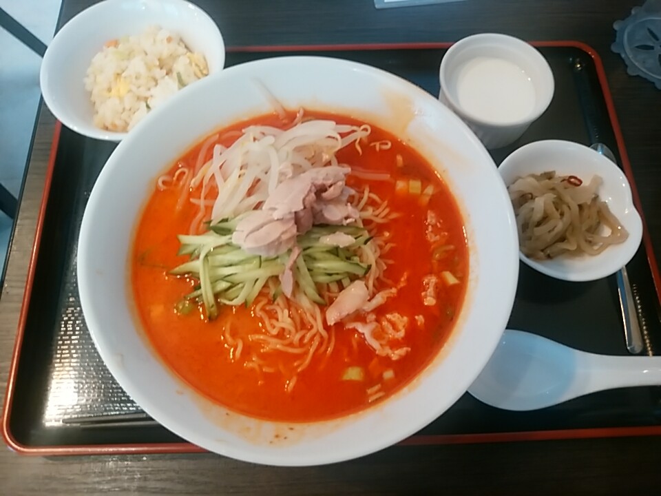 注文の品:冷し坦坦麺(ミニ炒飯、小鉢、デザート)