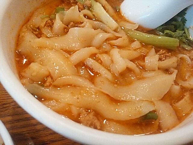 でー担々麺、美味い。適度な酸味と辛味&胡麻風味。パクチー入れるか聞かれる。当然入れる。