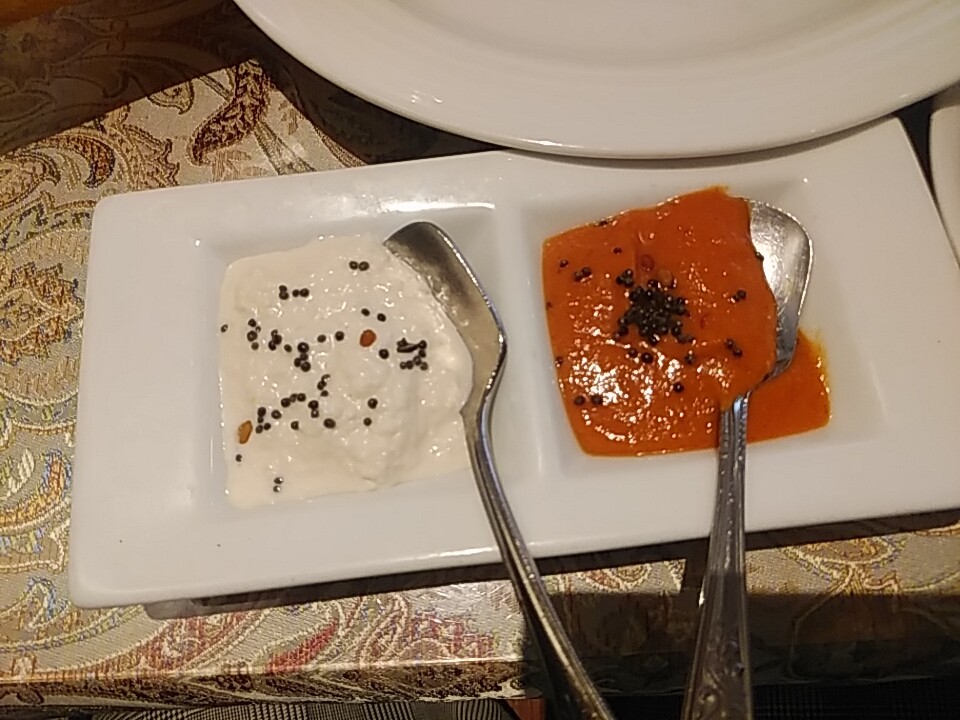 ソースが2種付く。ヨーグルトとトマト風味。いい感じにドーサをアレンジできる。