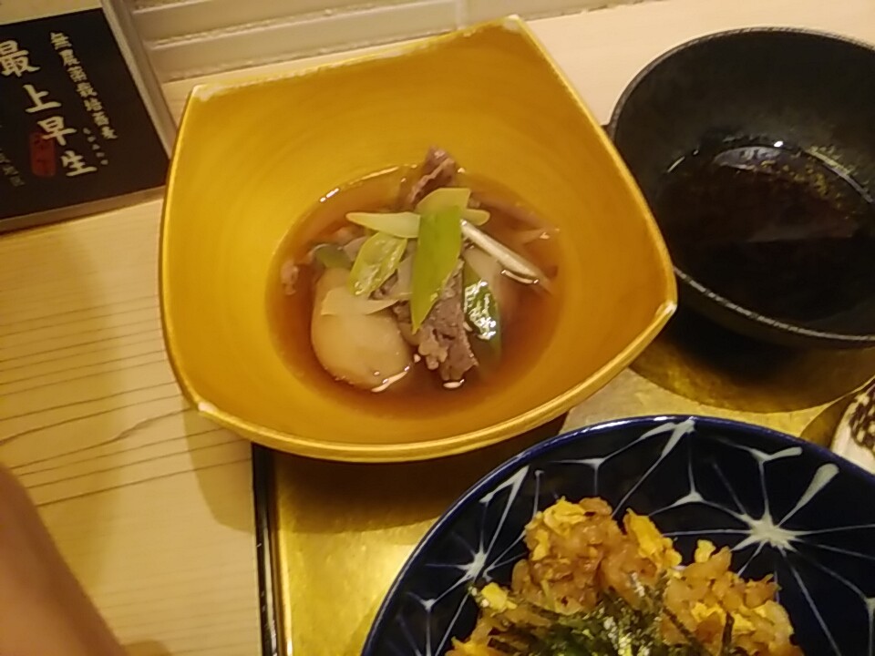 同じく週替り小鉢、山形名物芋煮。里芋が2個と恐らく山形牛、出汁が効いて美味い。