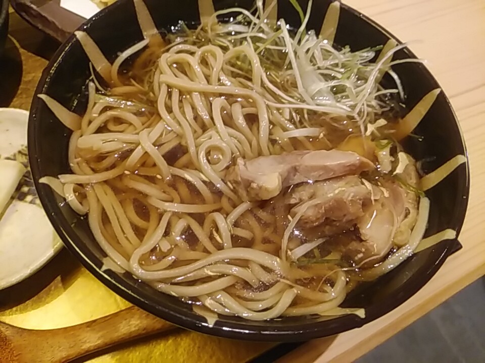 冷たい肉そば(小)選択。でもボリューム的には全然小じゃない。蕎麦は太くボソっとした感じ。鳥は臭みない。冷たい汁はしょっぱめ、すすってるうちに美味くなる。