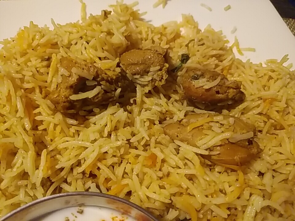 チキンビリヤニ、付け合わせはライタ(ヨーグルトサラダ)のみ。