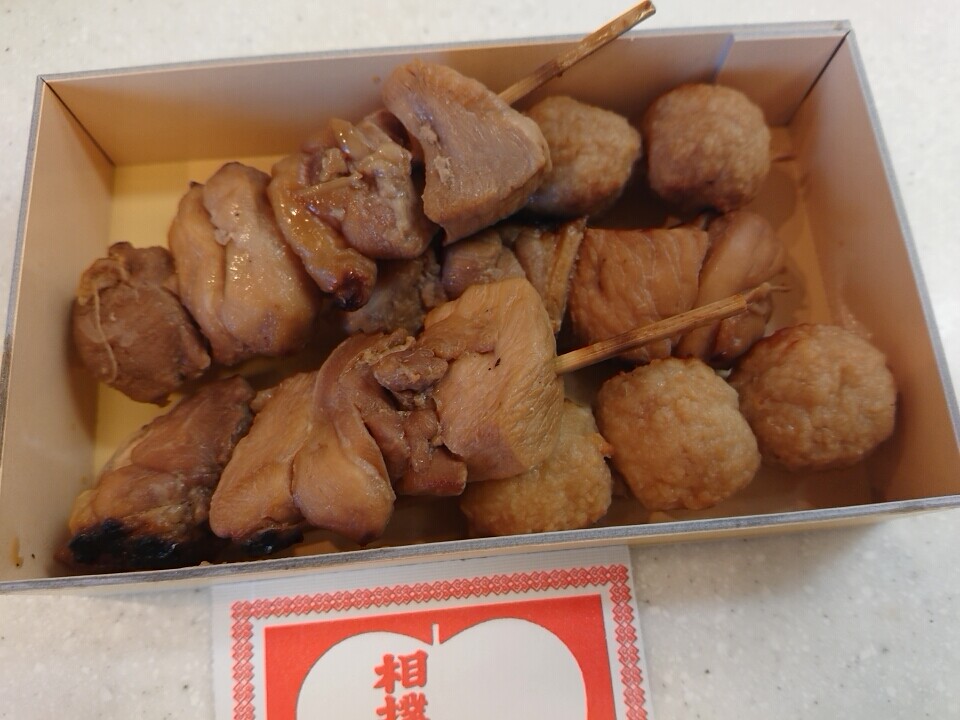 レジ横に居るんですよ〜。国技館やきとり。5本で700円。