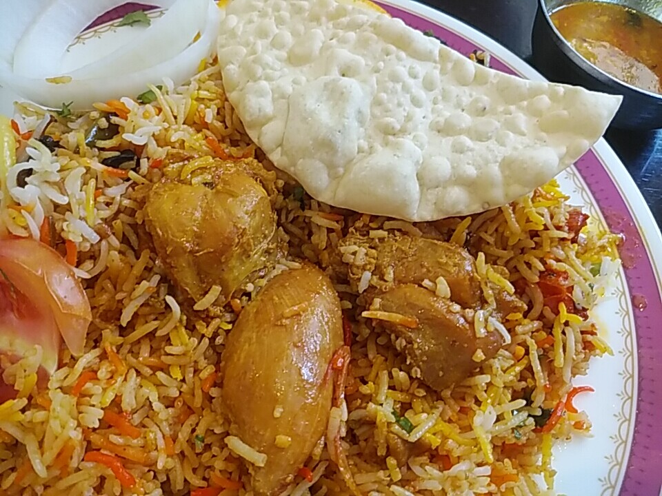 チキンごろごろ、バスマティーライスには独特の風味が施され美味い! でも辛いです。
