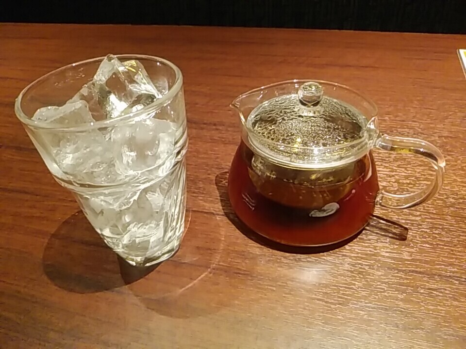 個室に案内され、まずはドリンクを指定し先に運ばれるシステム。19種の中国茶から、生姜ウーロン茶(アイス)にした。