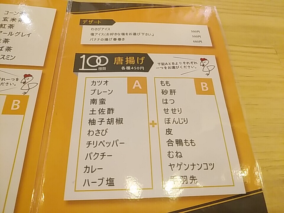 唐揚げ定食は、10種の味から選べる。左A欄。