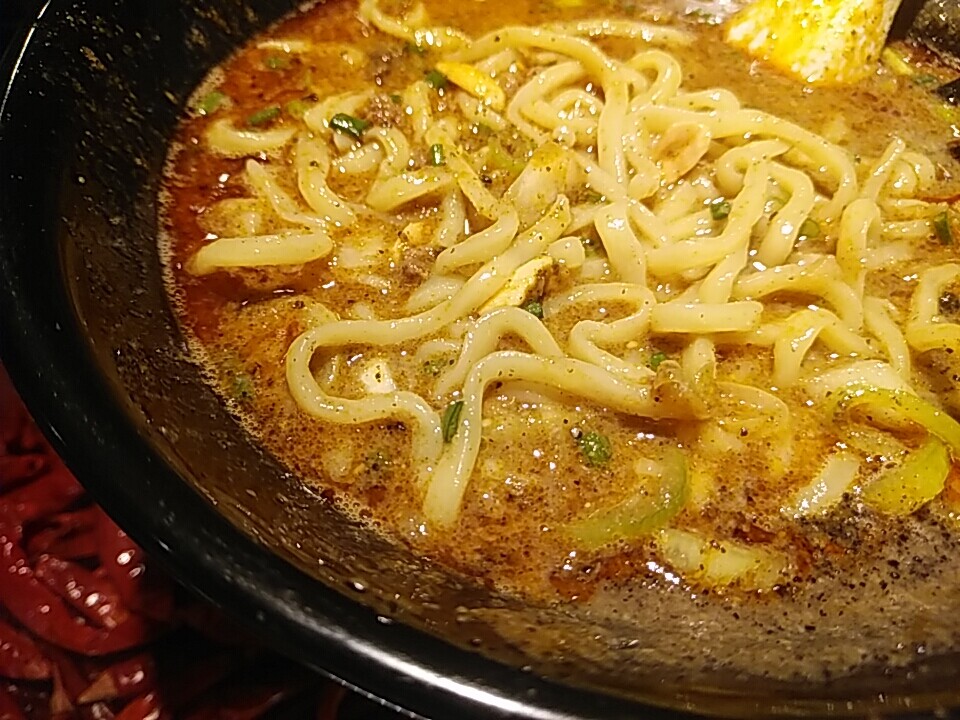 四川担々麺オリジナルブレンド、イイ感じある。見るからに濃厚〜。辛さは1〜3を指定でき2にした。