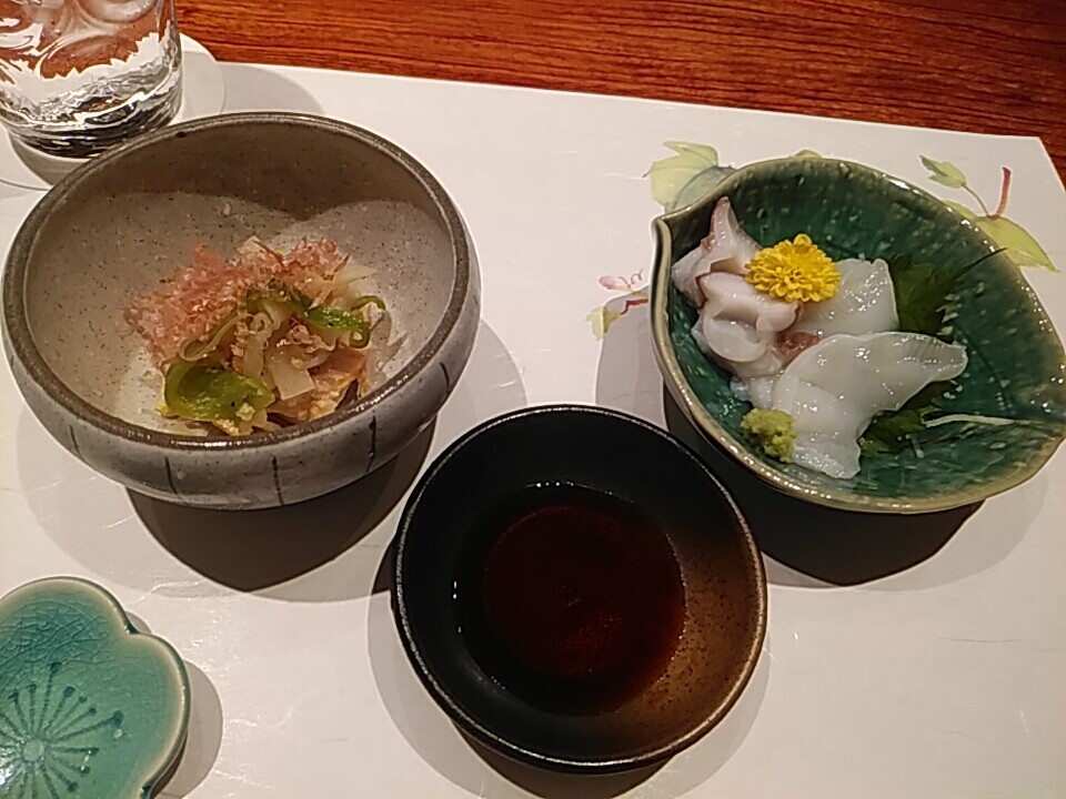 冷製の和え物と刺身。この刺身が生蛸で、吸盤のコリコリ感と生身のねっとりで うめー( ゚∀ ゚)