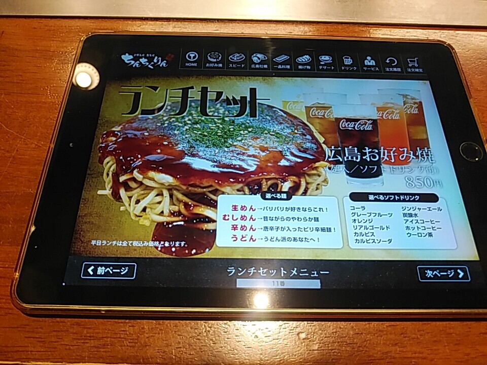 さくっと新橋駅から激近、ちんちくりんで広島お好み焼を堪能〜。タブレットオーダーシステムになっていた。