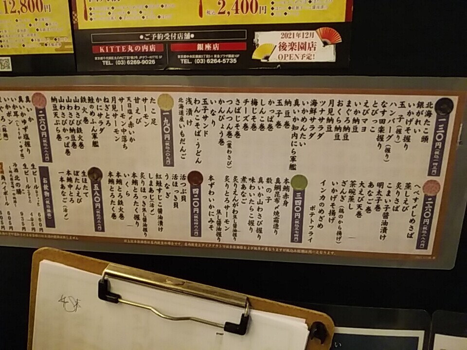 店内オーダーでの単体メニュー。基本一皿2貫。