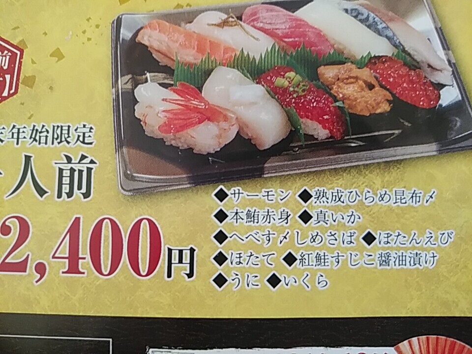 注文の品:年末年始限定お持ち帰り寿司 一人前10貫