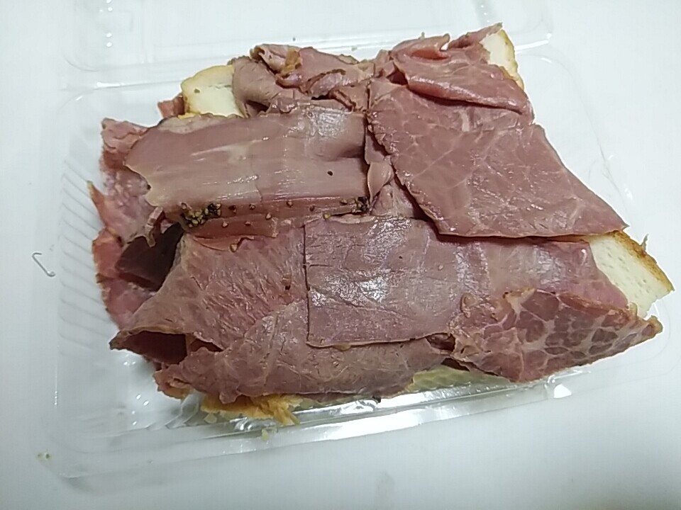 展開しました。パンはワンセットです。こんなの一気に無理。。パストラミビーフは保存し後日堪能〜。