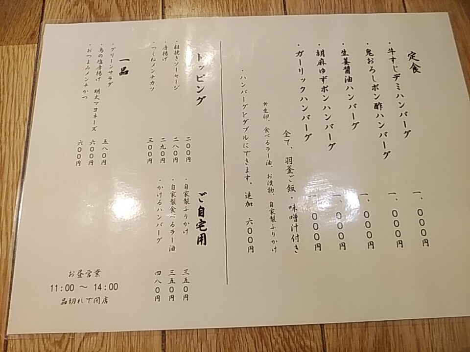 [ 新橋 山本のハンバーグ ランチメニュー ]