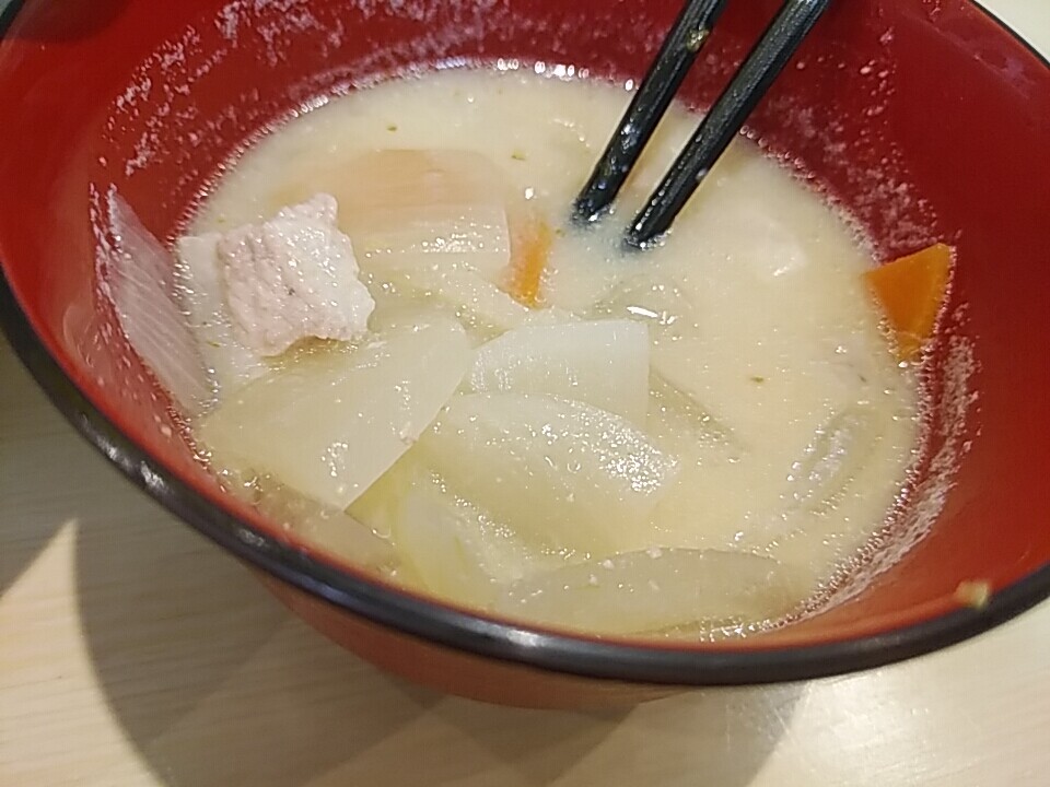 そんで、味噌汁が美味い!麦味噌っぽいまろっとした風味で具沢山の豚汁だ。単品では200円。カツ丼にはデフォルトで付く。