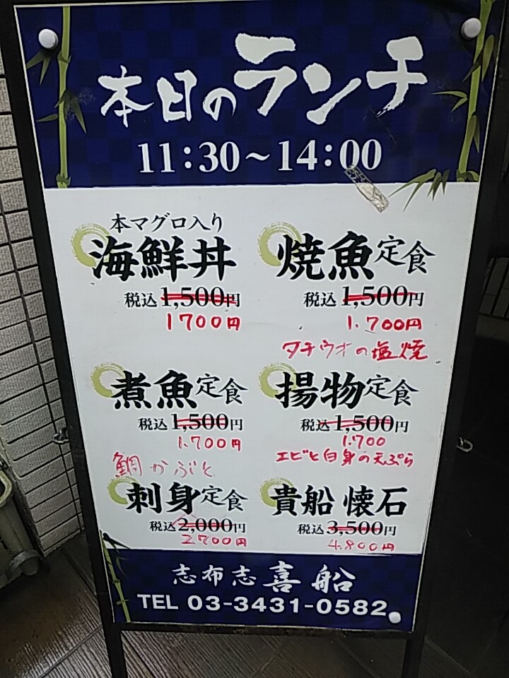 がっつり海鮮系を欲し、新橋 志布志(しぶし)のランチへ行った。