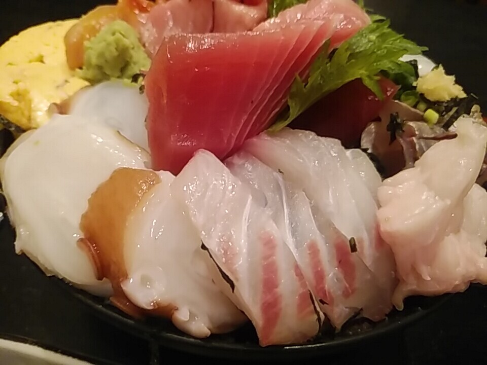 はい、海鮮丼でございます。すす、すばらしい(^ヘ^;)(^ヘ^;)(^ヘ^;)。。大脳汁が出た。