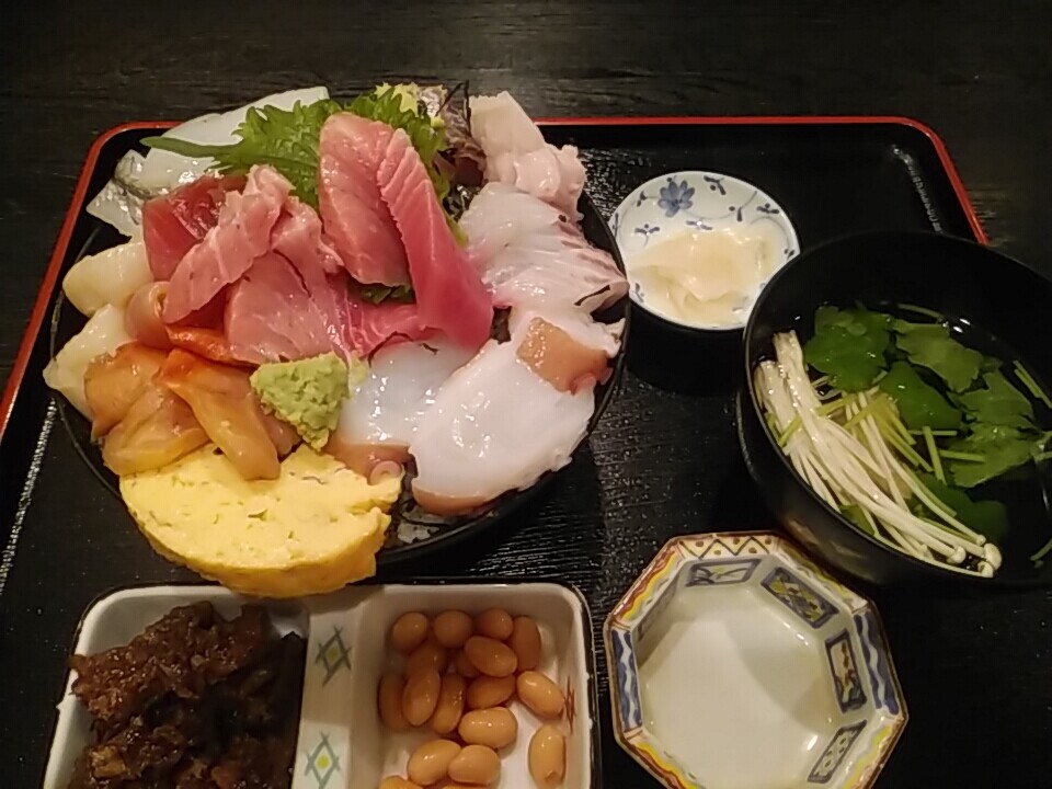 新橋 志布志(しぶし)のランチ海鮮丼、この内容で1700円はすこぶる良心的、満足でございました。