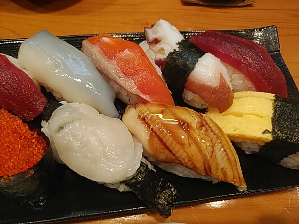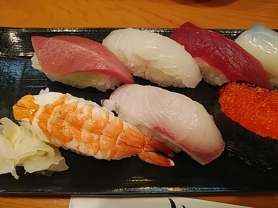 マグロ中トロ、ヒラメ、赤身、ちゃんとした海老、鯛、良質。トビッコはご愛敬ということで。