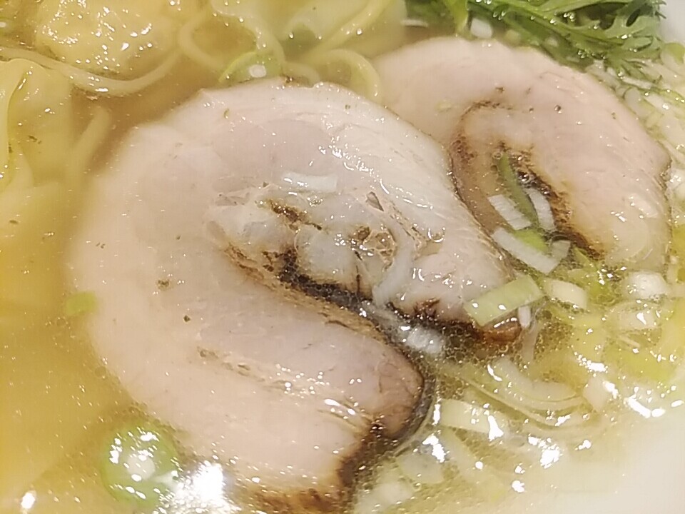 麺は中太もっちり系で好きなタイプ。スープは塩ラーメン専門店なだけに透明であっさりながらも、やり過ぎてない豚 鶏 節の旨味。