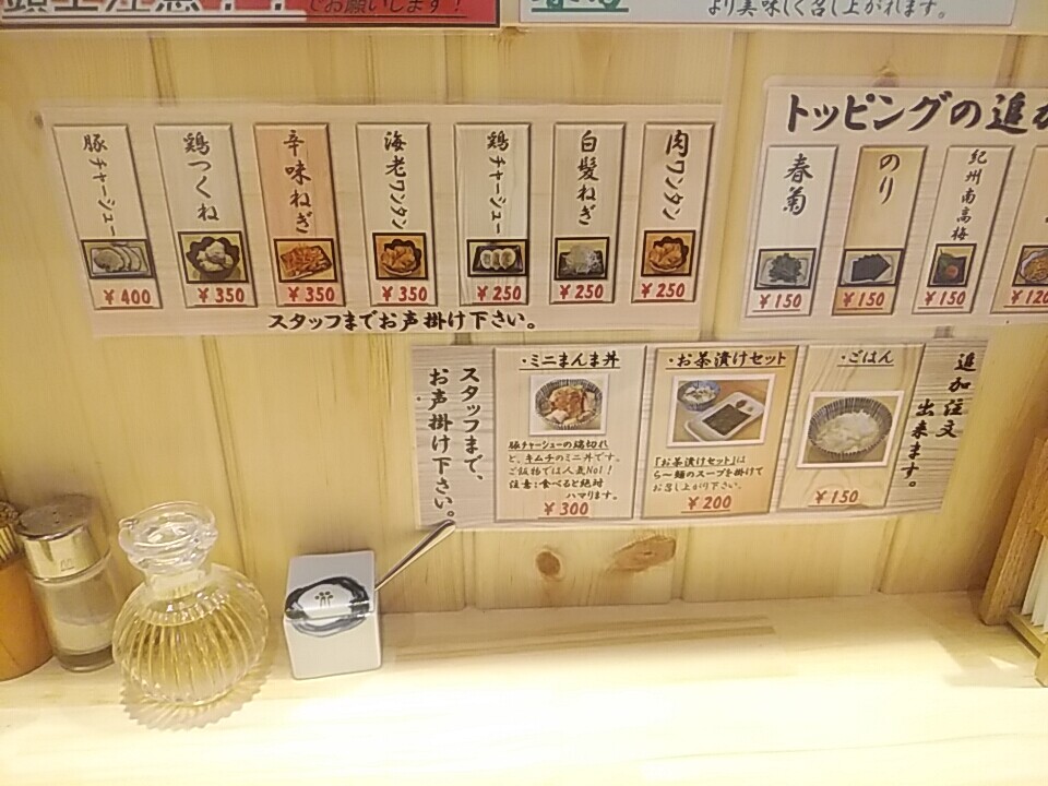 卓上には追加トッピング豊富。