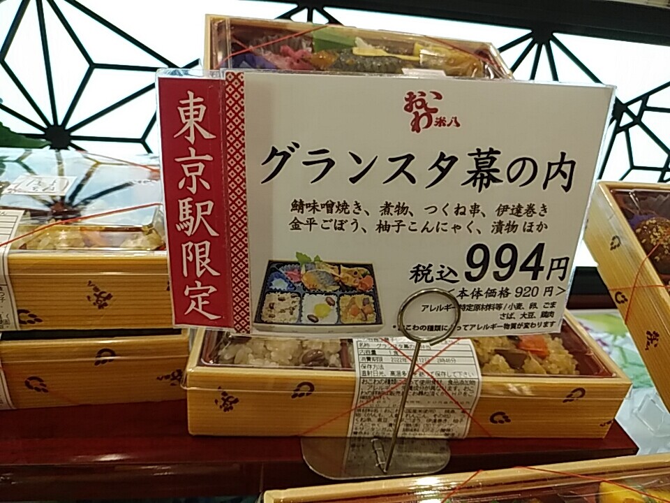 東京駅構内・改札内B1グランスタのおこわ米八(よねはち)にて、東京駅限定「グランスタ幕の内」がある。