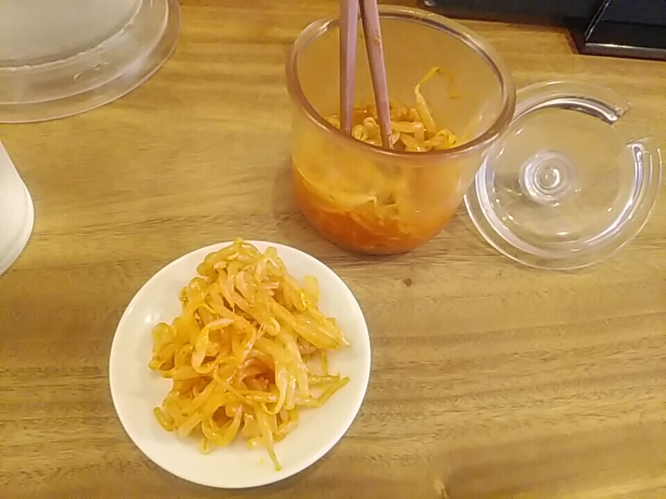 まずはモヤシキムチが提供される。