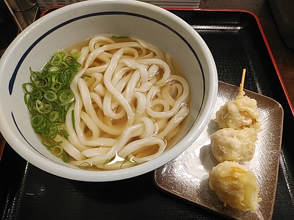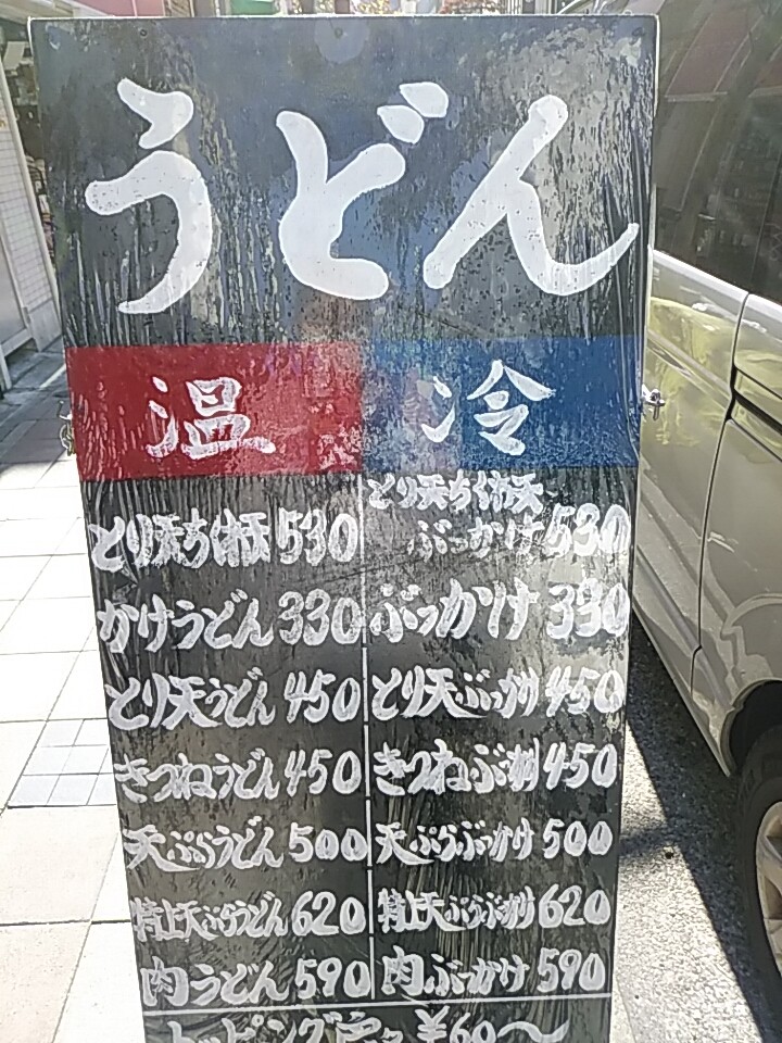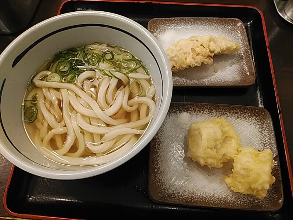 注文の品:かけ、とりちくわ、デラックス、きつね、週替り天などなど