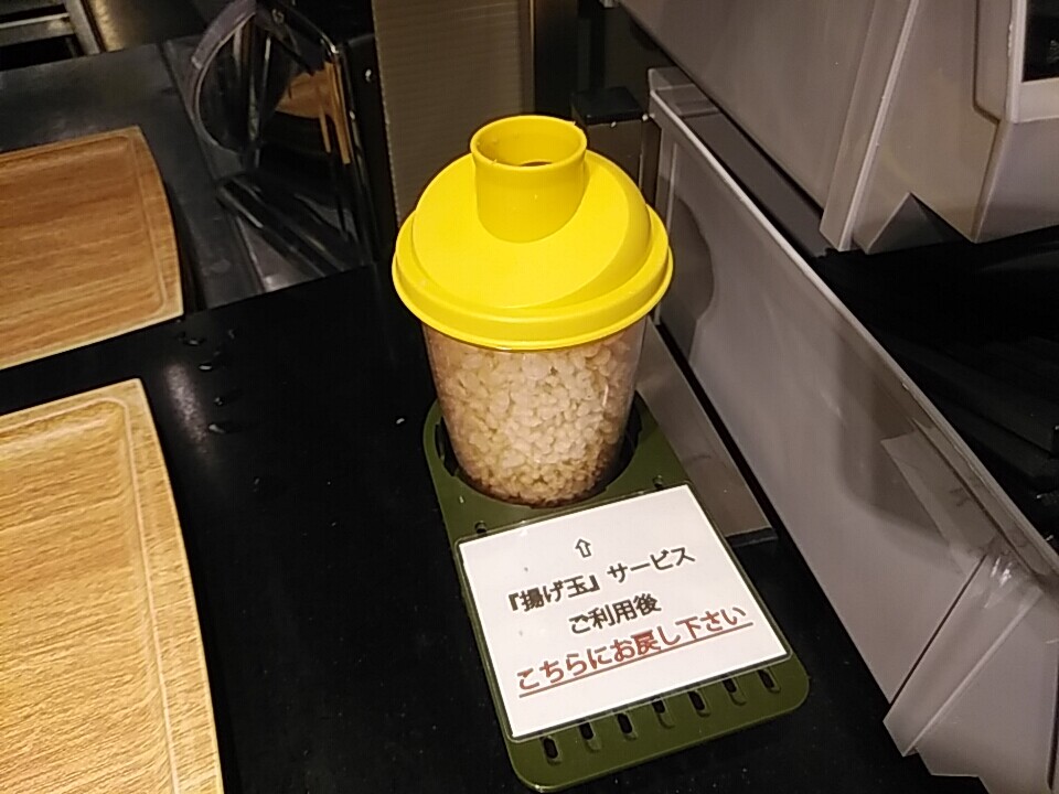 座り席では薬味が無いが、返却口に用意されてるので必要に応じ活用。