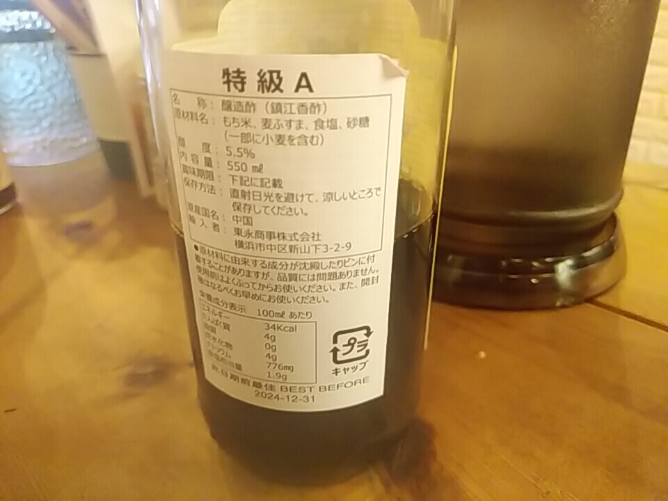 裏面見たら「特級A 鎮江香酢」と記載あった。