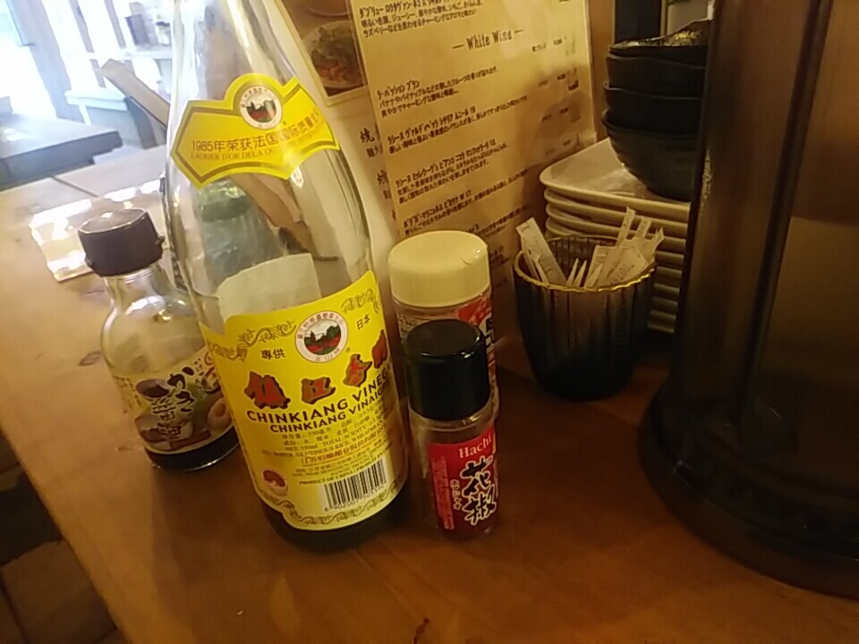 でー、調味アイテム黒酢がイイ! 香ばしい様ななんとも独特な風味で焼売と合う!