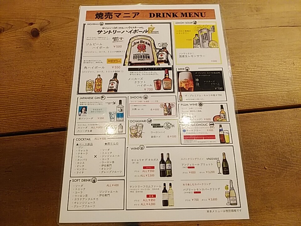 夜の部メニュー、その他等