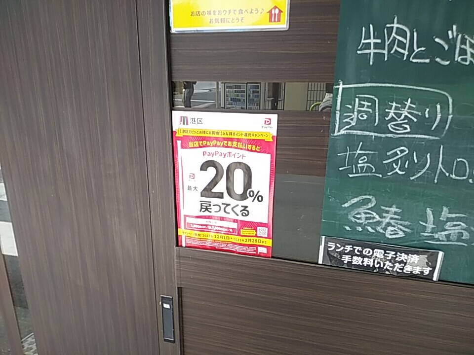 ・でー、会計時現金のみだと!! 店頭に電子マネー掲示(PayPay 20%OFF対象店)あったんですよ〜。
