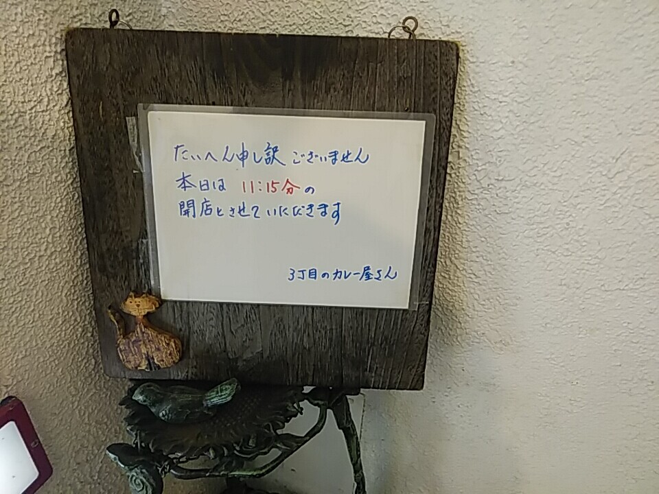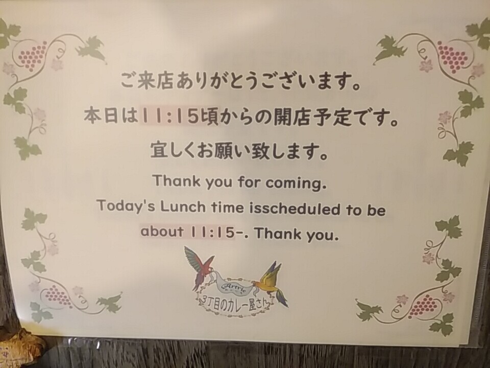 1回目での階段掲示。「大変申し訳ございません」から始まり、え?終了?と思いきや11:15からの開店案内。ややこしい・・。