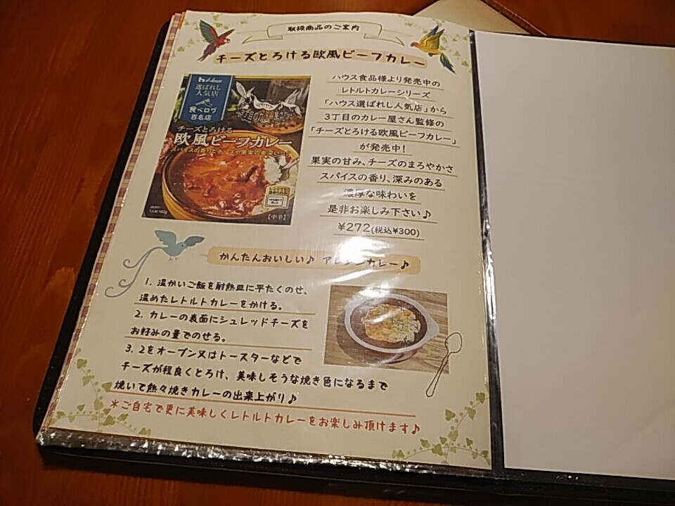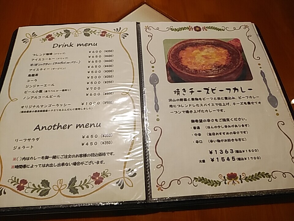 焼きチーズビーフカレーの他に、シーフードカレー、菜食カレー等あり。