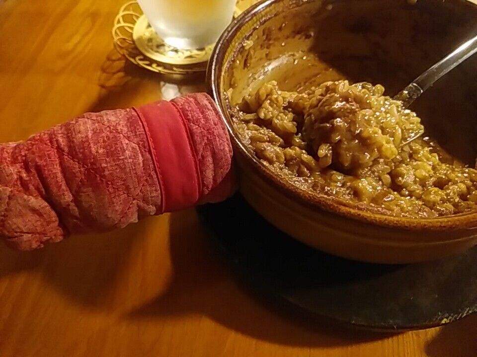 焼カレーを こそげ落とすのに。