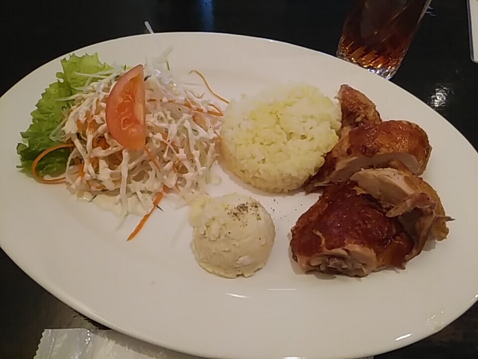 当店名物、ロテサリーチキンのローストチキンプレート。ちょっと遅い時間だったので皮はパリパリしてなかったけど、身はしっとりしてて美味しいです。