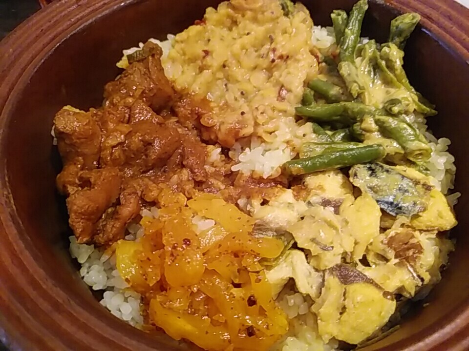 鳥、魚をベースに5種の具材は別の味付けで、絶妙〜なスパイシーさで優しい味。新橋駅前ビルTHE CIRCLE(ザ サークル)までには及ばないけどホント美味しい。